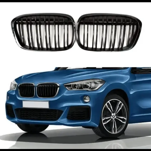 Compatible With Bmw X1 F48 2016-2022 Front Bumper Grill Glossy Black