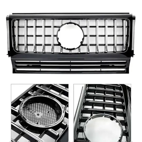 Front Bumper Grill Gtr Silver CC-1755 Compatible With Mercedes G Class W463 1990-2018 G Wagon G500 G550 G63 G65 G55