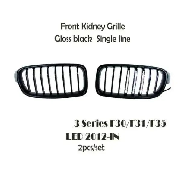 Front Bumper Grill Led Black CC-1541 Compatible With Bmw 3 Series F30 2012-2018