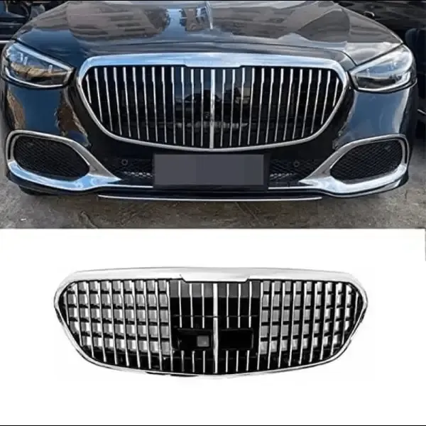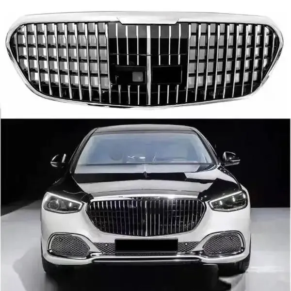 Front Bumper Grill Compatible With Mercedes S Class W223 2020-2023 Maybach Brabus Sports Gt Amg Front Bumper Panamericana Grill W223 Grill Maybach Silver With Camera Hole