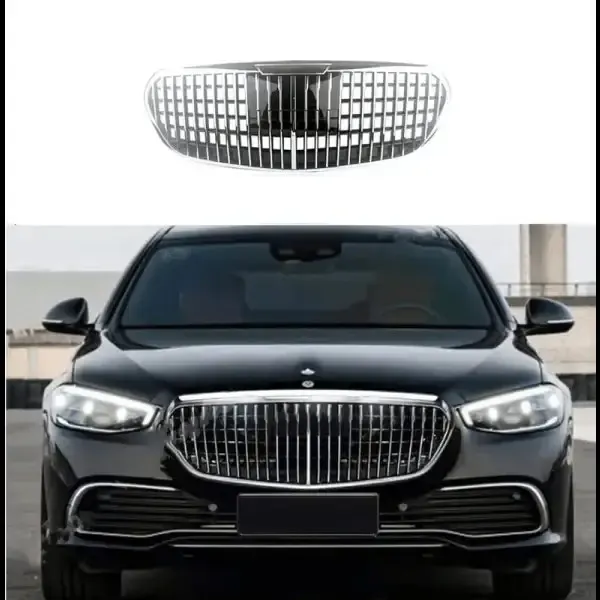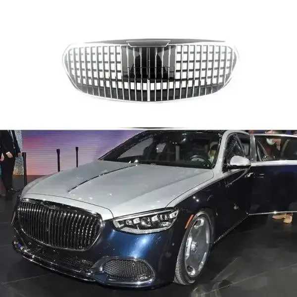 Title: Front Bumper Grill Compatible With Mercedes S Class W223 2020-2023 Maybach Brabus Sports Gt Amg Front Bumper Panamericana Grill W223 Grill Maybach Silver Without Camera Hole