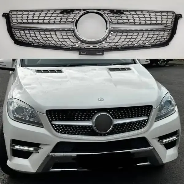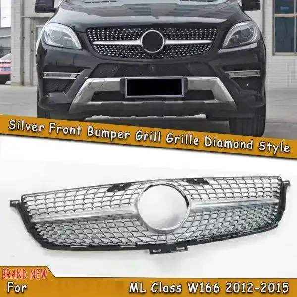 Front Bumper Grill Panamericana Grill W166 Grill Diamond Silver Ml CC-1779 Compatible With Mercedes Ml W166 X166 2012-2016