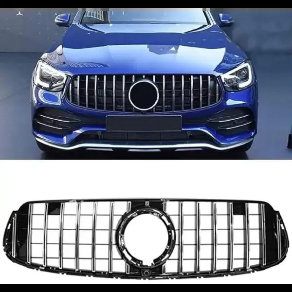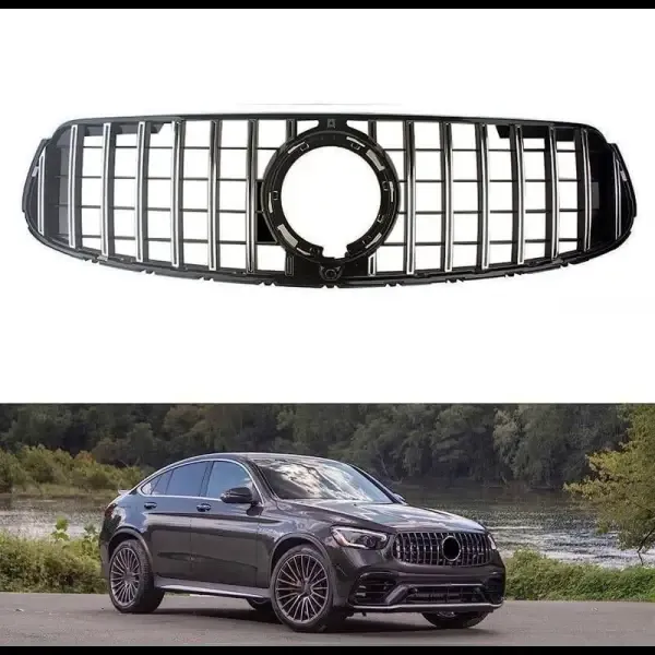 Front Bumper Grill Panamericana Grill W253 Grill Coupe Gtr Silver Lci CC-1777 Compatible With Mercedes Glc W253 X256 2020-2023 Glc 63 Glc 65 Coupe