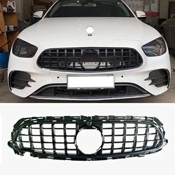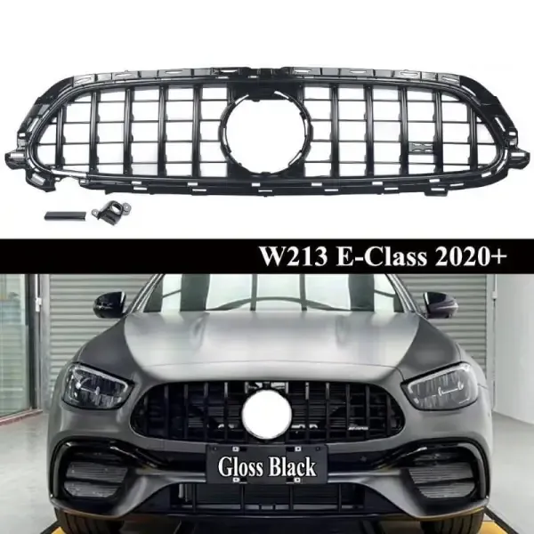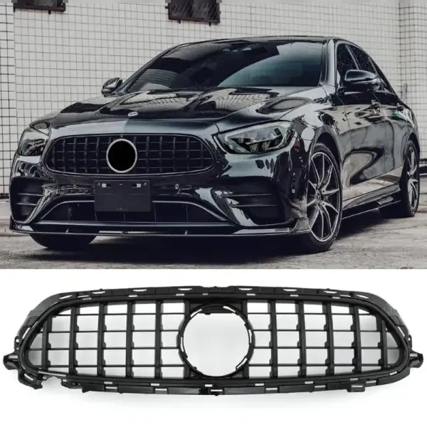 Compatible With Mercedes Benz E Class W213 Lci 2021-2023 Front Bumper Grill Panamericana Gt Sports Gtr Black Lci Amg Sports CC-1744