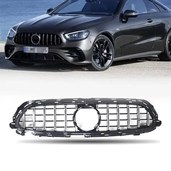 Compatible With Mercedes Benz E Class W213 Lci 2021-2023 Front Bumper Grill Panamericana Gt Sports Gtr Silver Lci Amg Sports CC-1745