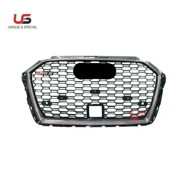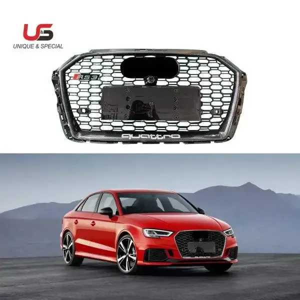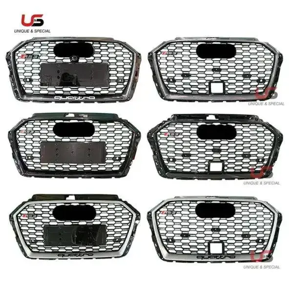 Front Bumper Grille Modified to RS3 Grille Honeycomb Mesh ABS Material Compatible With 2017-2020 Audi A3
