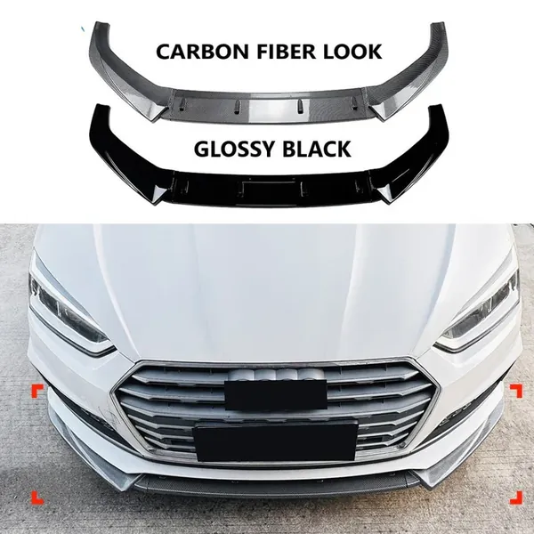 COMPATIBLE WITH AUDI A5 S5 F5 SLINE 2017-2020 FRONT BUMPER LIP SKIRT SPLITTER SPOILER ZST-984 CF CARBON FIBER LOOK