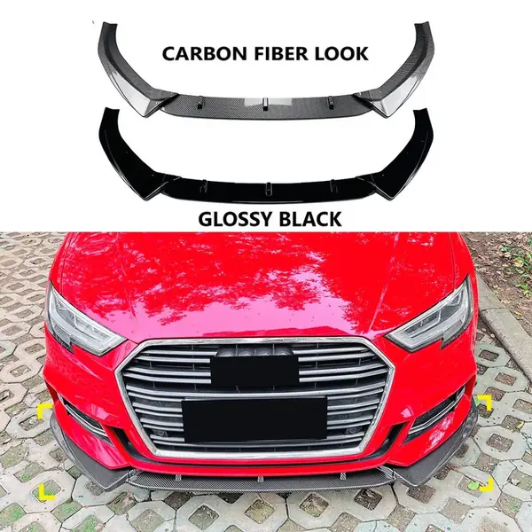 COMPATIBLE WITH AUDI A3 8V FACELIFT S LINE 2017-2020 FRONT BUMPER LIP SKIRT SPLITTER SPOILER ZST-985 GLOSSY BLACK