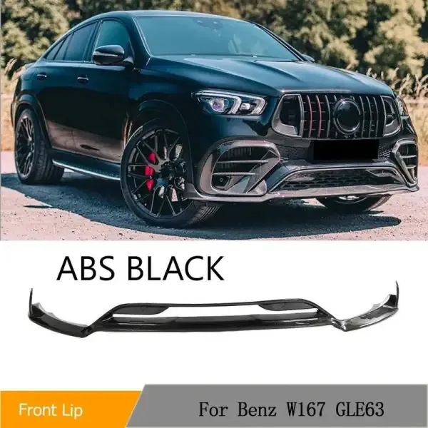 Front Bumper Lip Skirts Splitter Brabus Style Glossy Black CC-5023 Compatible With Mercedes Gle W167 2019-2024 Amg Sports