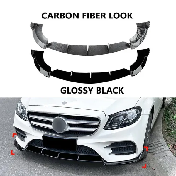 COMPATIBLE WITH MERCEDES BENZ C CLASS W205 LCI 2019-2021 AMG FRONT BUMPER LIP SPLITTER DIFFUSER SKIRST FLAG CANARD CARBON FIBER LOOK ZST-633 CF