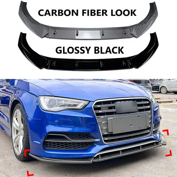 Front Bumper Lip Splitter Diffuser Skirts Flag Canard Carbon Fiber Look Zst-718 Cf CC-6205 Compatible With Audi A3 2013-2016 S3