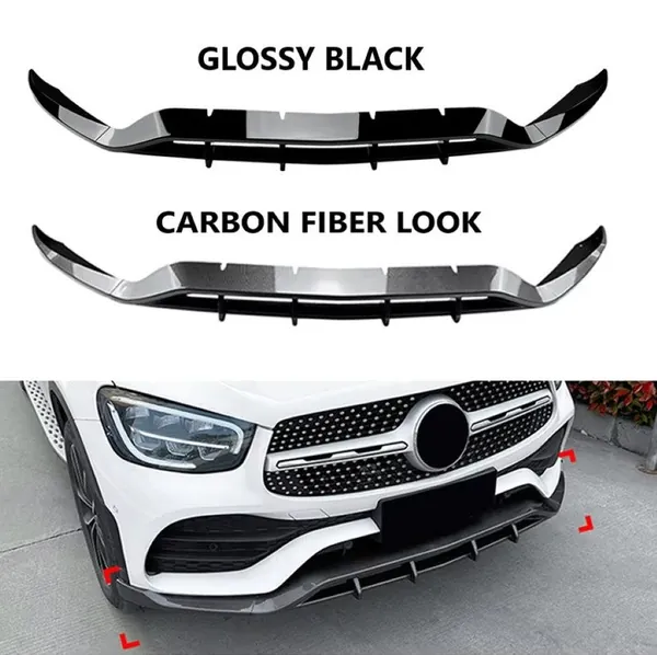 COMPATIBLE WITH MERCEDES BENZ GLC W253 X253 C253 LCI 2020-2022 AMG FRONT BUMPER LIP SPLITTER DIFFUSER SKIRST FLAG CANARD GLOSSY BLACK ZST-452 GB