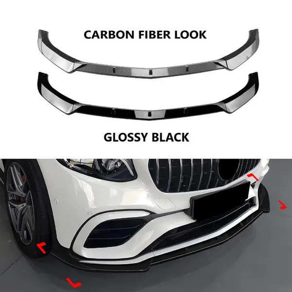 COMPATIBLE WITH MERCEDES BENZ GLC W253 X253 2016-2019 AMG FRONT BUMPER LIP SPLITTER DIFFUSER SKIRST FLAG CANARD GLOSSY BLACK ZST-762 GB