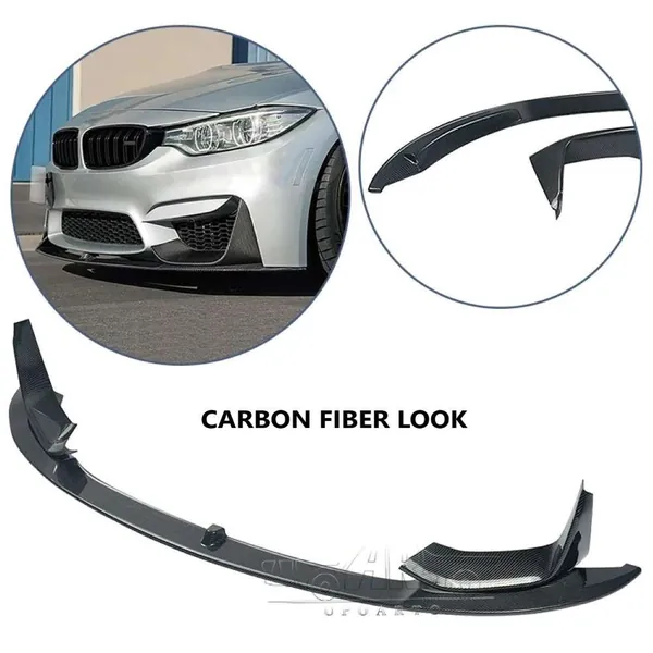 COMPATIBLE WITH BMW 3 SERIES F80 F82 2012-2018 M3 M4 FRONT BUMPER LIP SPLITTER SKIRTS 4 PART MP STYLE AR-BM-0181 CF CARBON FIBER LOOK