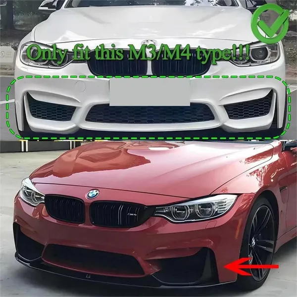 Front Bumper Lip Splitter Skirts Carbon Fiber Look F30/35-016/017 GC CC-7262 Compatible With BMW 3 Series F30 Converted To F80 2012-2018 M Sport M3 M4