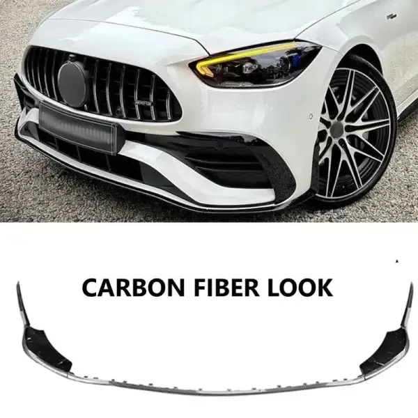 Front Bumper Lip Splitter Skirts Flag Spoiler Carbon Fiber Look Zst-488 Cf CC-4298 Compatible With Mercedes C Class W206 2022+ Amg