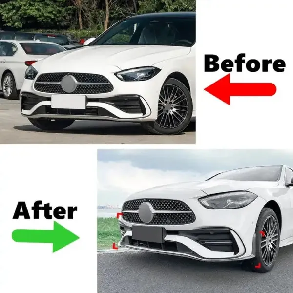 Compatible With Mercedes C Class W206 2022+ Amg Front Bumper Lip Splitter Skirts Flag Spoiler Carbon Fiber Look Zst-488 Cf