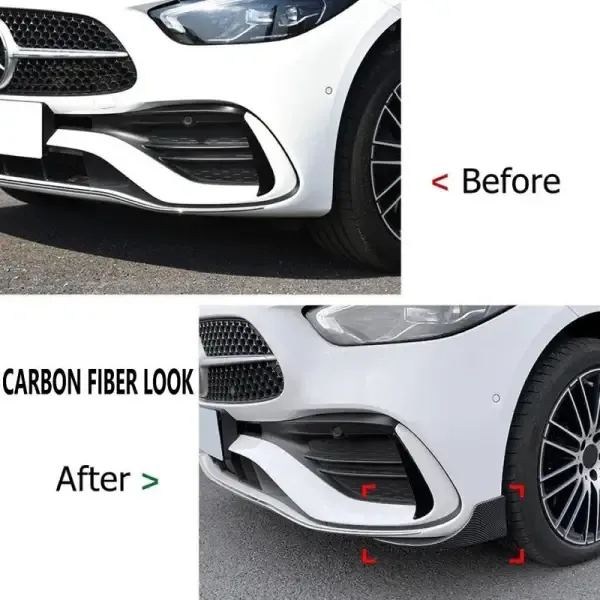 Compatible With Mercedes C Class W206 2022+ Front Bumper Lip Splitter Skirts Flag Spoiler Zst-051 Cf Carbon Fiber Look Brabus Amg Style