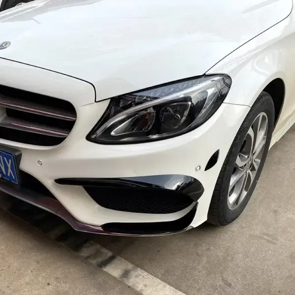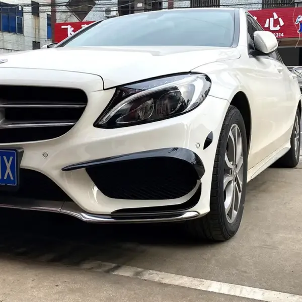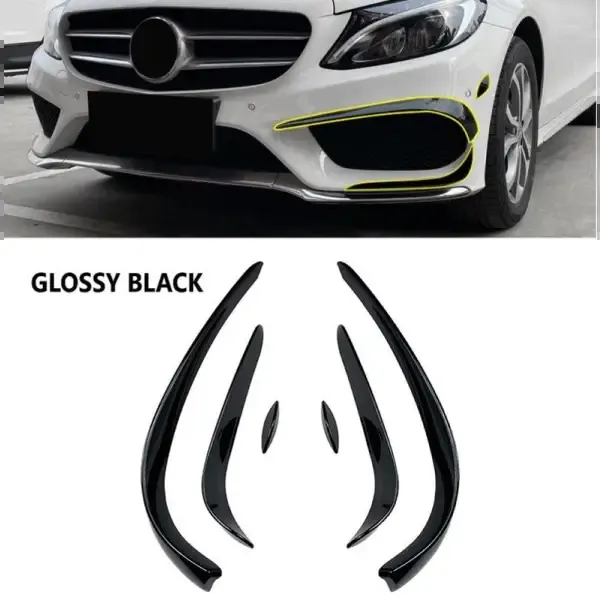 Compatible With Mercedes C Class W205 2015-2019 Amg C43 C63 Front Bumper Lip Splitter Skirts Flag Spoiler Zst-352 Gb Glossy Black