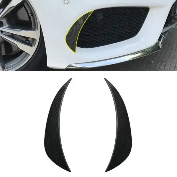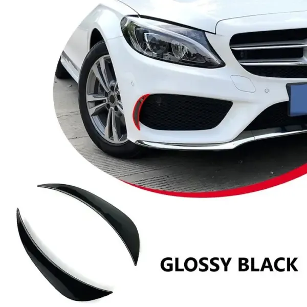 Compatible With Mercedes C Class W205 2015-2019 Amg C43 C63 Front Bumper Lip Splitter Skirts Flag Spoiler Zst Glossy Black