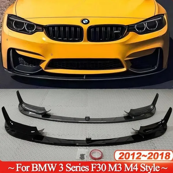Front Bumper Lip Splitter Skirts Carbon Fiber Look F30/35-016/017 GC CC-7262 Compatible With BMW 3 Series F30 Converted To F80 2012-2018 M Sport M3 M4
