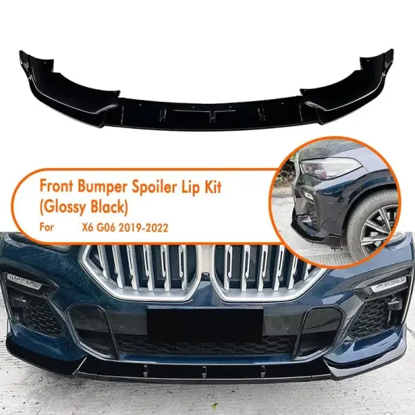 Compatible With Bmw X6 G06 2019-2023 Front Bumper Lip Splitter Skirts Spoiler Diffuser M Sports M Performance Mp Xm6 Glossy Black Zst-643 Gb