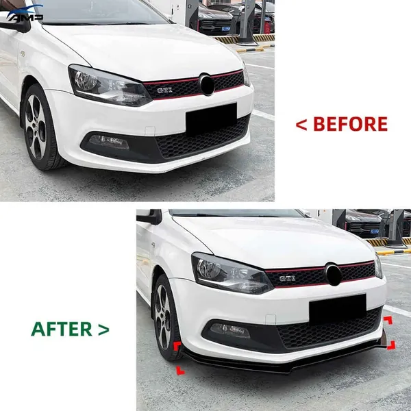 Front Bumper Lip Splitter Skirts Zst-1109 Gb Glossy Black CC-9256 Compatible With Vw Volkswagen Polo Jetta 2010-2014