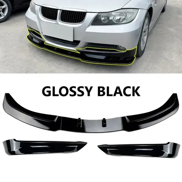 Compatible With Bmw 3 Series E90 2004-2008 Front Bumper Lip Spoiler Skirst Splitter Flag Zst-401+zst-406 Gb Glossy Black