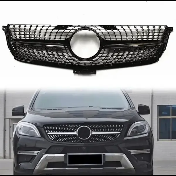 Front Bumper Panamericana Grill Diamond Black CC-1778 Compatible With Mercedes ML W166 X166 2012-2016