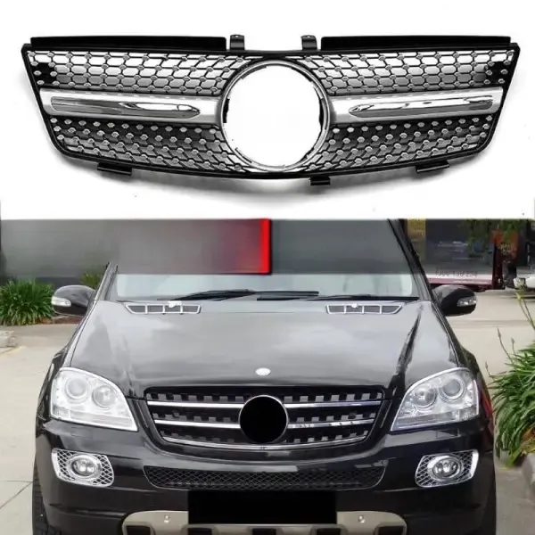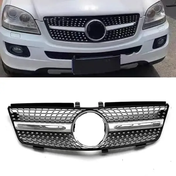 Compatible With Mercedes Ml W164 2005-2008 Sports Gt Amg Front Bumper Panamericana Grill W164 Grill Diamond Silver CC-1795