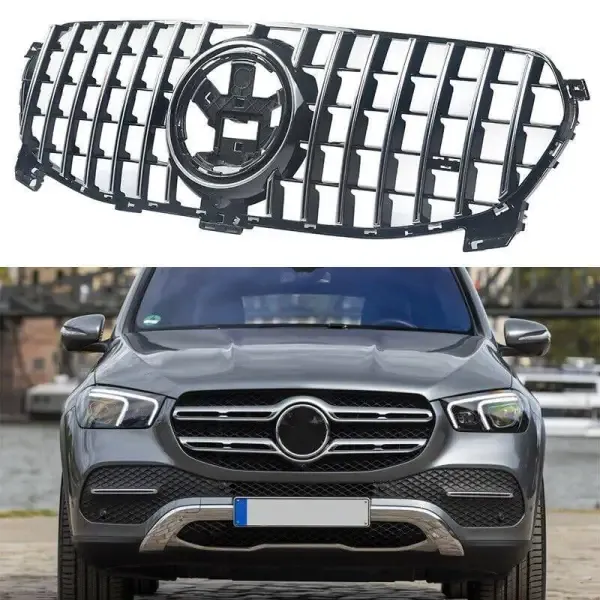 Compatible With Mercedes Gle W167 X167 2019-2023 Front Bumper Panamericana Grill W167 Grill Gtr Black Dynamic Gle CC-1788