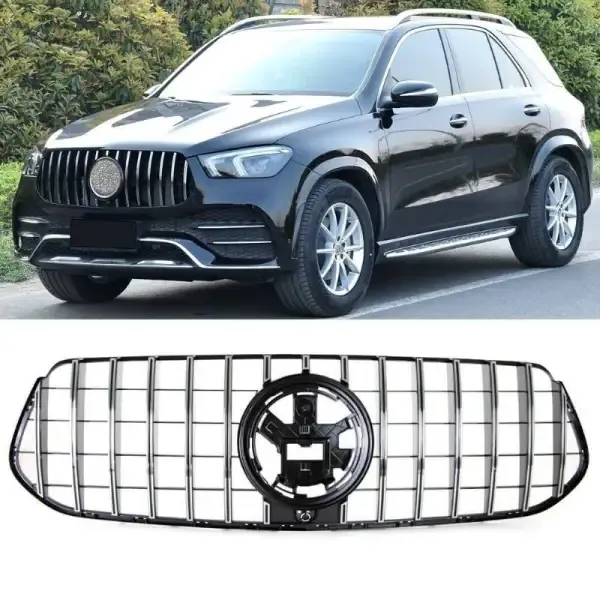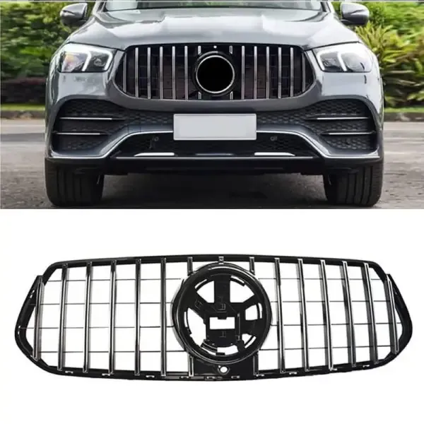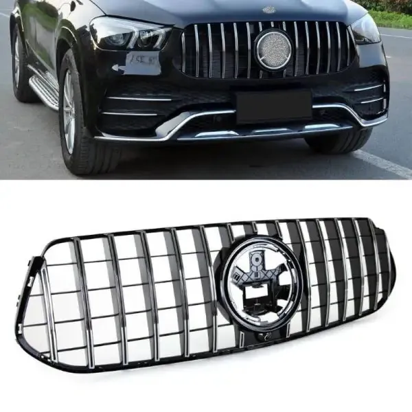 Compatible With Mercedes Gle W167 X167 2019-2023 Sports Amg Version Front Bumper Panamericana Grill W167 Grill Gtr Silver Amg Gle CC-1791
