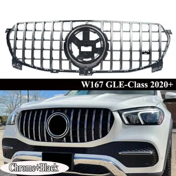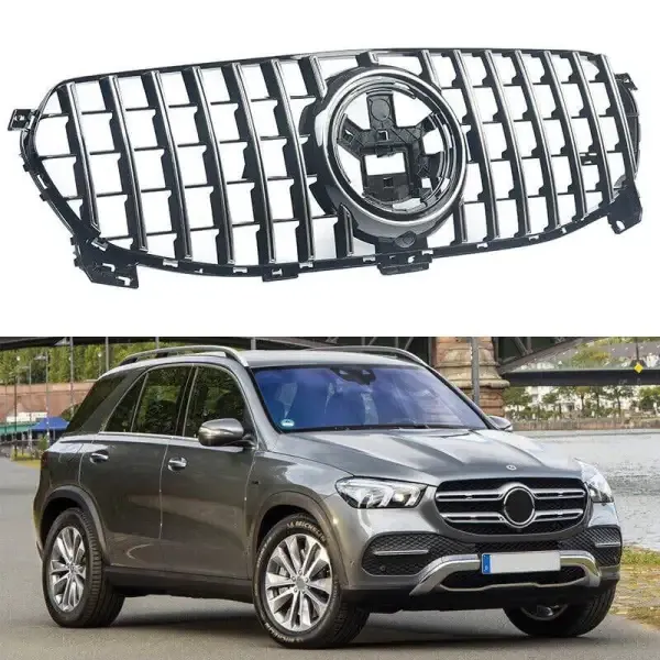 Compatible With Mercedes Gle W167 X167 2019-2023 Front Bumper Panamericana Grill W167 Grill Gtr Silver Dynamic Gle CC-1789