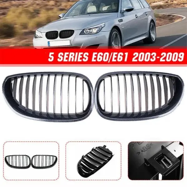 Compatible With Bmw 5 Series E60 2004-2009 Front Bumper Show Grill Carbon Fiber Single