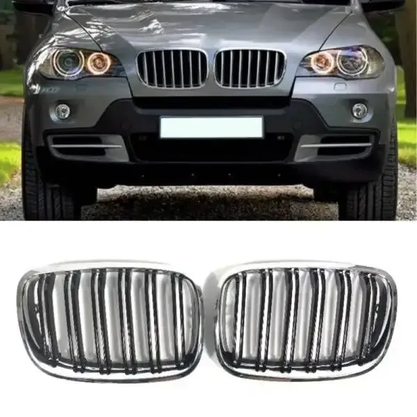 Front Bumper Show Grill Chrome CC-1618 Compatible With BMW X5 E70 2006-2013 X6 E71 2007-2014
