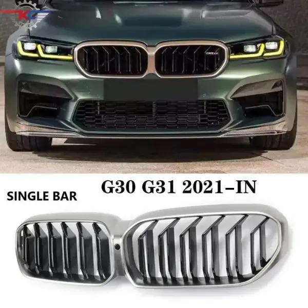 Compatible With Bmw 5 Series G30 Lci 2021+ Front Bumper Show Grill Chrome Gray Single Line
