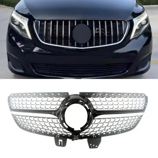 Compatible With Mercedes V Class W447 Lci 2020+ Front Bumper Show Grill Diamond Black