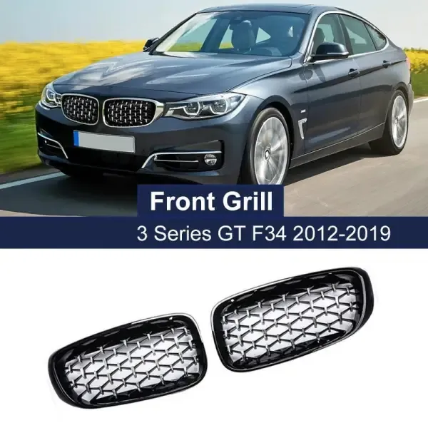 Compatible With Bmw 3 Series Gt F34 2012-2018 Front Bumper Show Grill Diamond Black Silver Line