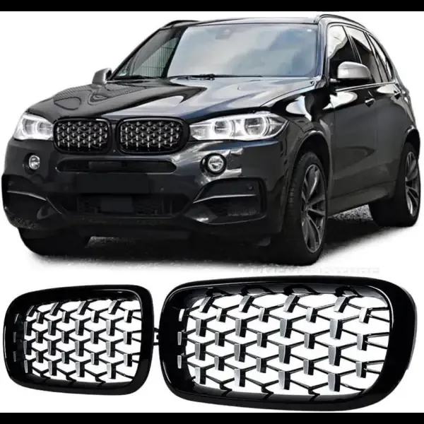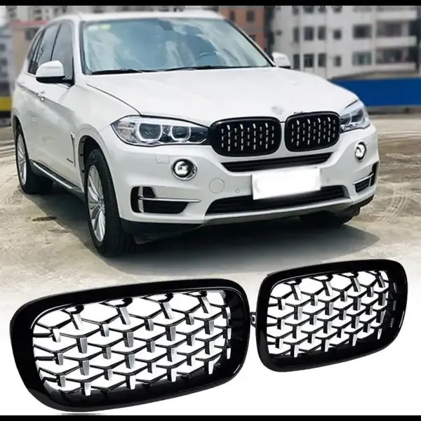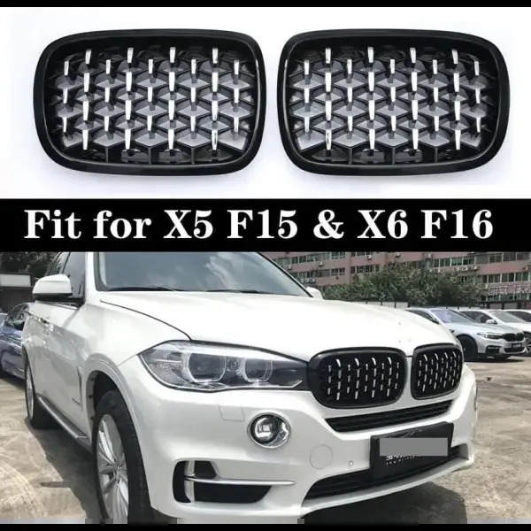 Compatible With Bmw X5 F15 X6 F16 2015-2019 Front Bumper Show Grill Diamond Black Silver Without Camear Hole