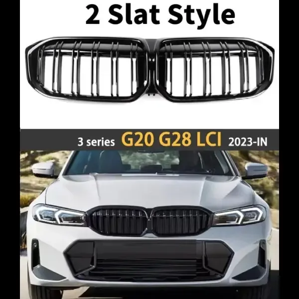Front Bumper Show Grill G20 Lci Grill Glossy Black Double CC-3007 Compatible With Bmw 3 Series G20 G28 LCI 2023+