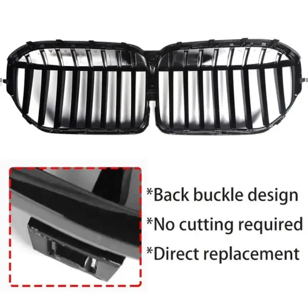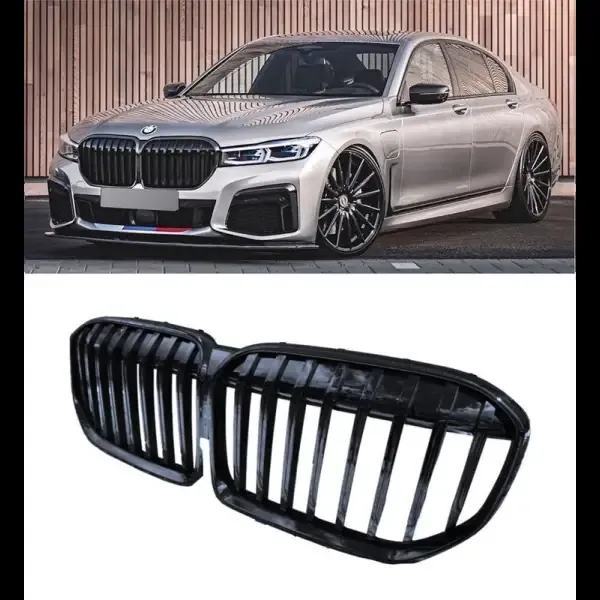 Front Bumper Show Grill Glossy Black Single CC-3094 Compatible With Bmw 7 Series G12 Lci 2019+
