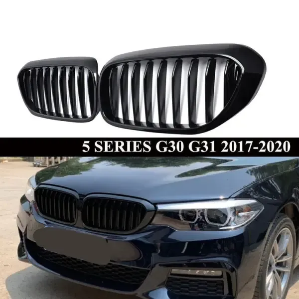 Compatible With Bmw 5 Series G30 2017-2021 Front Bumper Show Grill Glossy Black Single Line