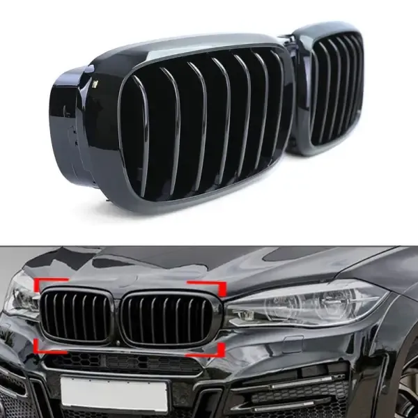 Compatible With Bmw X5 F15 X6 F16 2015-2019 Front Bumper Show Grill Glossy Black Single Without Camear Hole