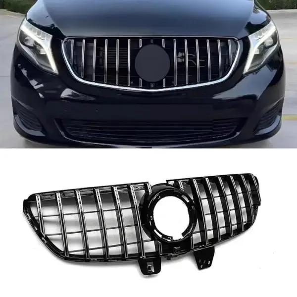 Compatible With Mercedes V Class W447 Lci 2020+ Front Bumper Show Grill Gtr Silver