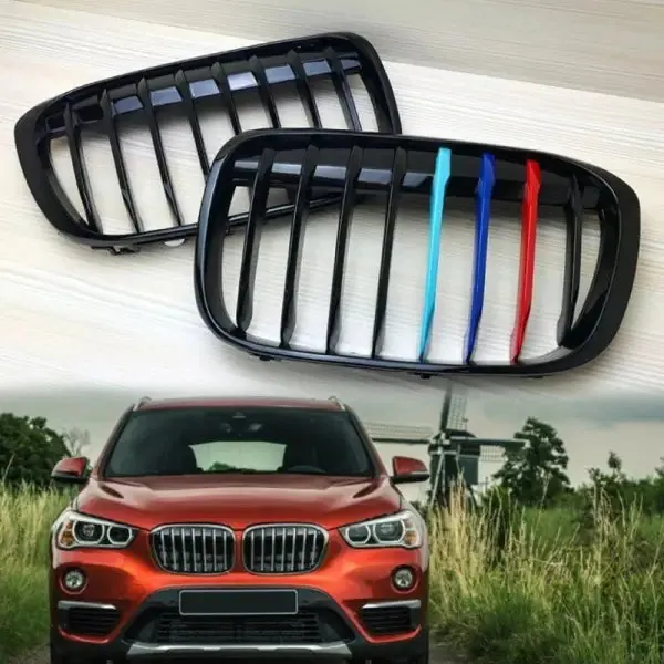 Compatible With Bmw X1 F48 2016-2019 Front Bumper Show Grill Tri Color Single Bar