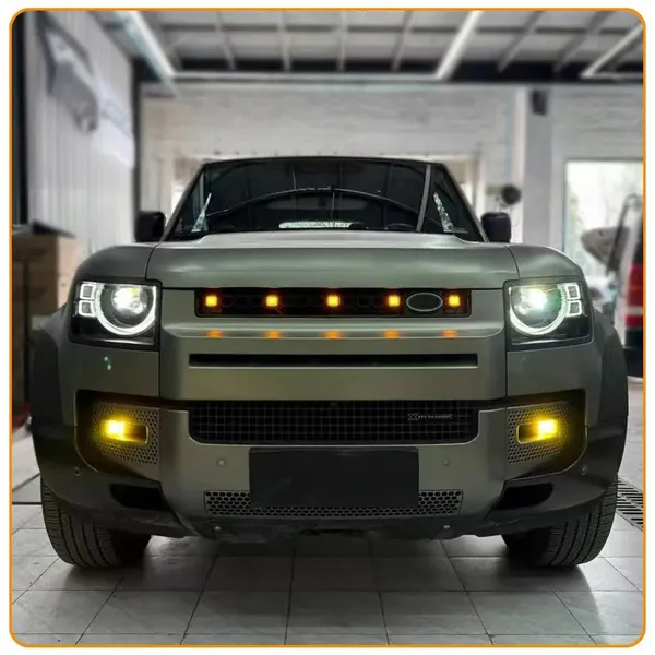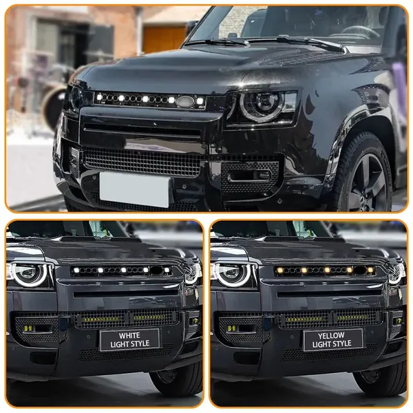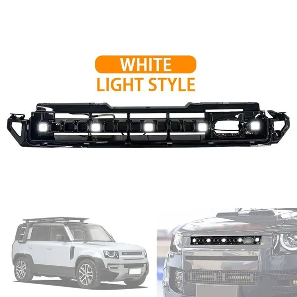 Front Bumper Show Led Grille With Light Octa Style White CC-8925 Compatible With Range Land Rover Defender 90 110 130 2020+