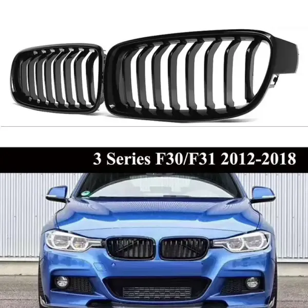 Compatible With Bmw 3 Series F30 2012-20218 Front Bumper Show M3 M Sports Grill Glossy Black Single Bar