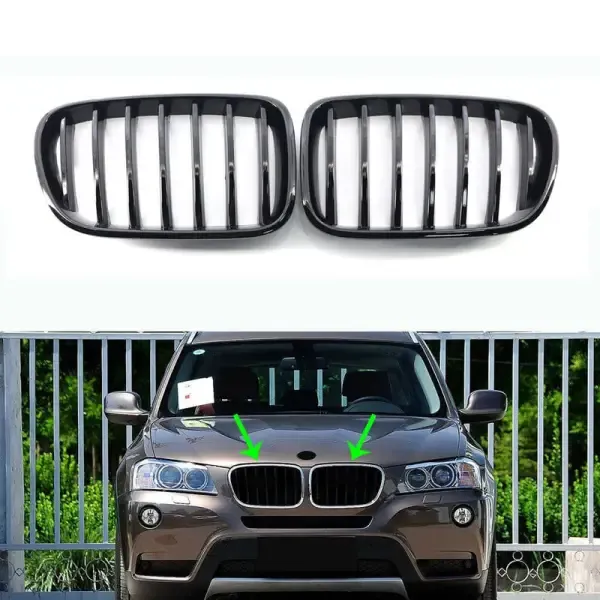 Front Bumper Show M3 M5 M Sports Grill Glossy Black Single Line CC-3106 Compatible With BMW X3 F25 2010-2014