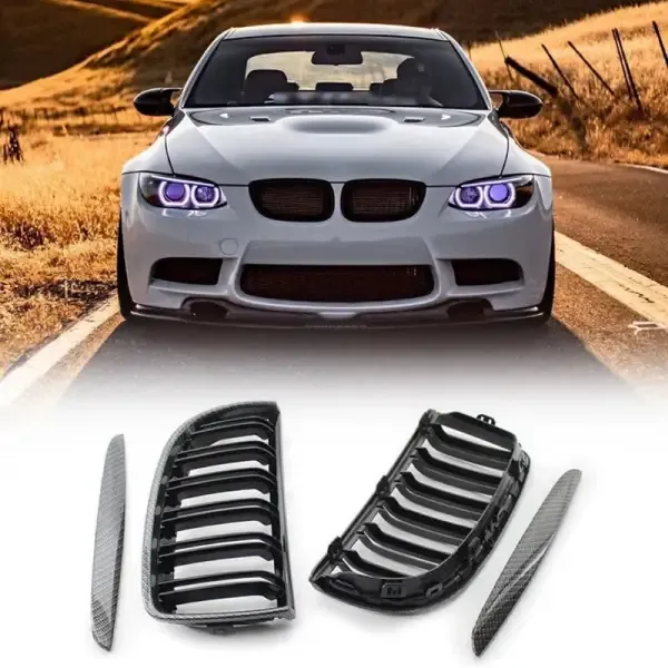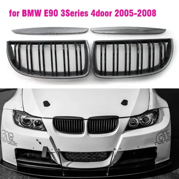 Front Bumper Show M3 Sport Grill Carbon Fiber Look CC-3075 Compatible With BMW 3 Series E90 2005-2007 Pre LCI