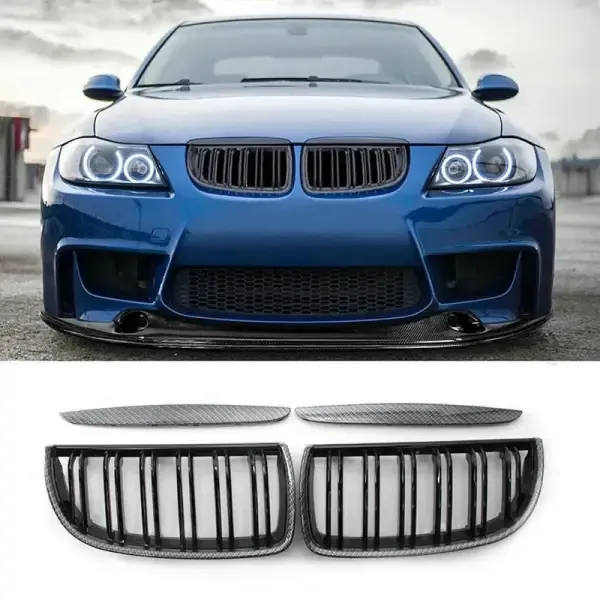 Compatible With Bmw 3 Series E90 2005-2007 Pre Lci Front Bumper Show M3 Sport Grill Carbon Fiber Look